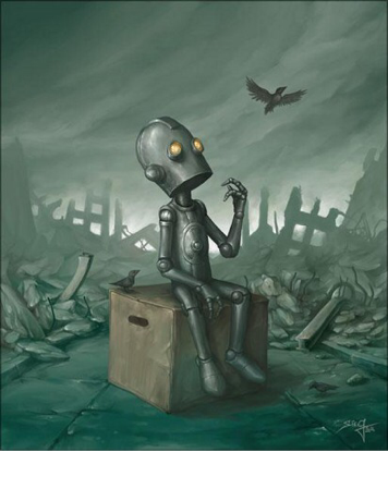 Later we learn that the robot was told to "Get lost" and now is trying its hardest not to disobey.