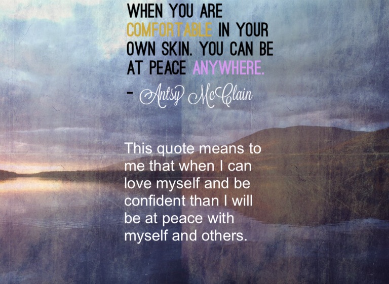 This quote means to me that when I can love myself and be confident than I will be at peace with myself and others.