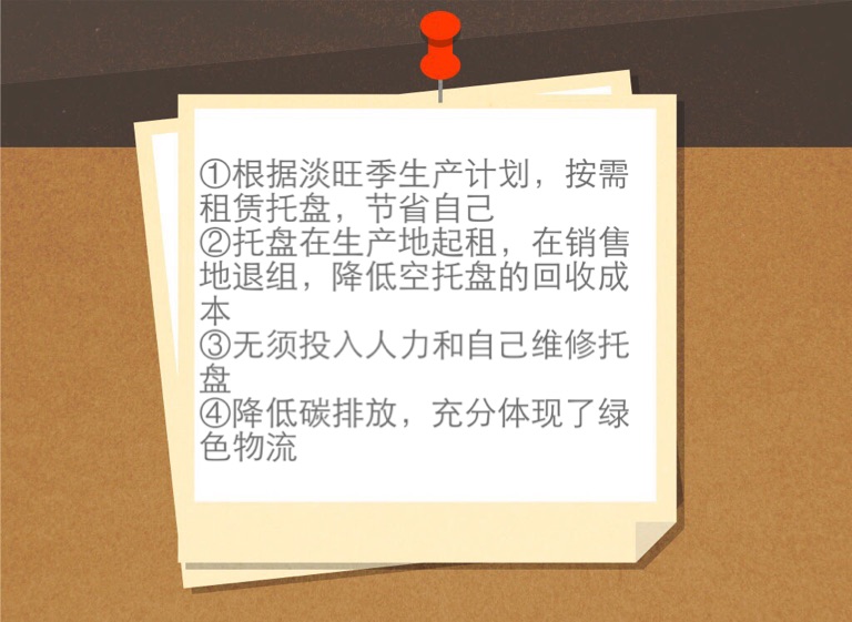 ①根据淡旺季生产计划,按需租赁托盘,节省自己