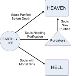 The purgatory was believed to be the halfway point between heaven and hell and it was also the place where you would be judged to see where you'd be going after death. If you had committed sins then you'd be punished and then sent to heaven.