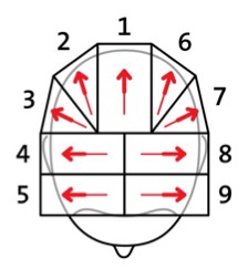 -Using comb elevation, cut each of the pie sections using the hair just underneath as a guide.