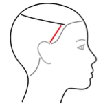 - Apply a 1/2 inch diagonal subsection parallel to the hairline in front of the ear. .