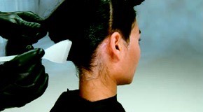 Taking 1/4 diagonal subsections apply the product to the scalp and then immediately to the mid lengths avoiding the poures end