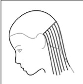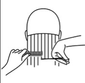 When cutting by the ear, hold the hair with the wide teeth of the comb to produce light tension. Allow the ear to protrude and let the hair fall loosely. Not taking extra care inthis area can cause an uneven perimeter below the ear.