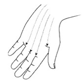 - Continue to work across the base of the fingers toward the little finger and down the side. Complete the circular motions at the center of the palm