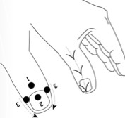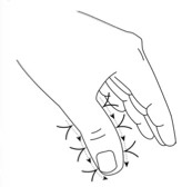 - As you reach the tip of the finger, activate the pressure points located on the base, top and sides of the nail. Press and release these points quickly.- Repeat this sequence for each finger.