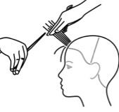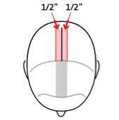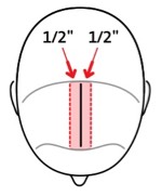 At the top of the head, create a 1 inch vertical subsection from the front hairline to the ear-to-ear parting. Take 1/2 inchfrom each side of the middle.