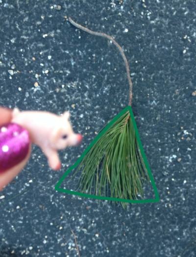 Jeesh then points out that a stick with a bundle of pine needles on it is in the shape of an isosceles triangle. Jeesh says that an isosceles triangle has two sides that are equal and this is true.