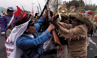 In Mexico, the people celebrate with large parades, food, and reenactments.