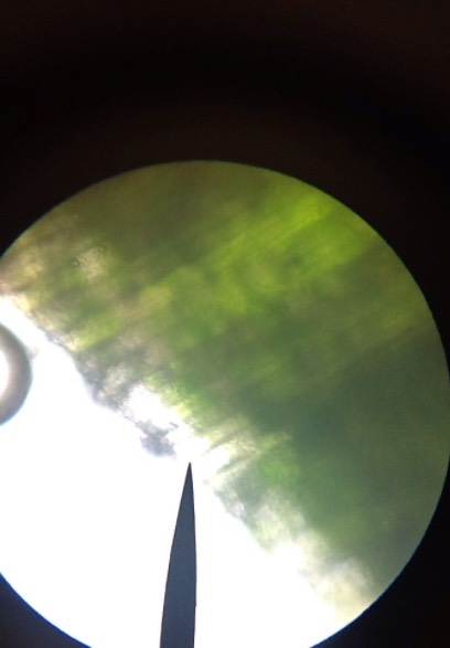 -Chloroplast can be seen just a little bit in the middle of the needle piece.
