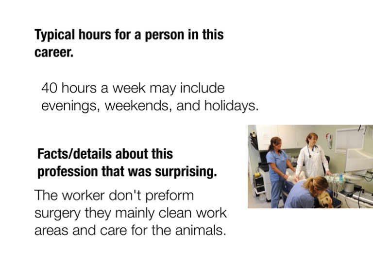The worker don't preform surgery they mainly clean work areas and care for the animals.