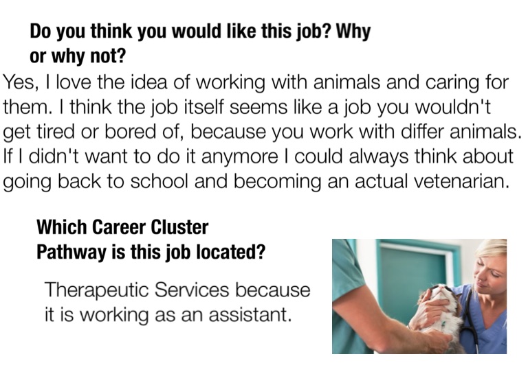 Yes, I love the idea of working with animals and caring for them. I think the job itself seems like a job you wouldn't get tired or bored of, because you work with differ animals. If I didn't want to do it anymore I could always think about going back to school and becoming an actual vetenarian.