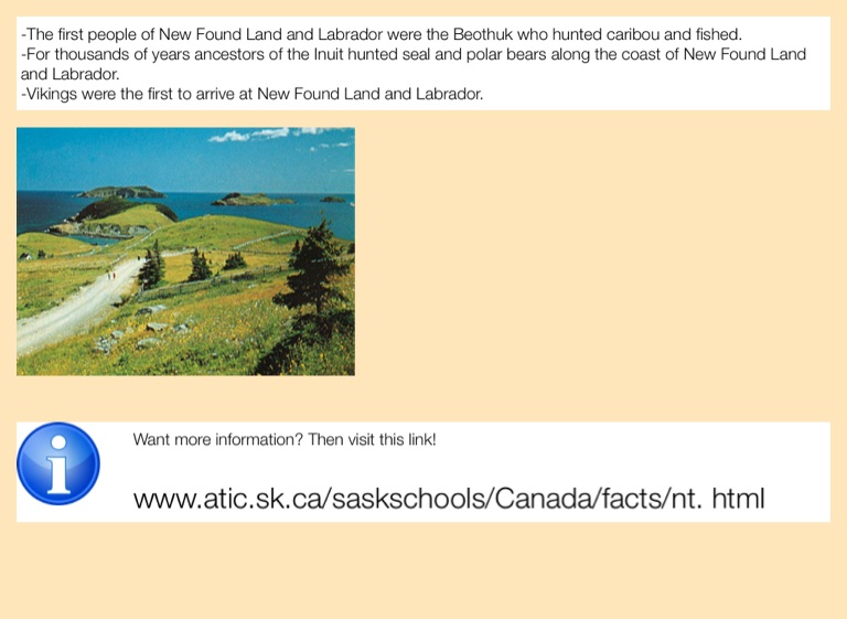 -The first people of New Found Land and Labrador were the Beothuk who hunted caribou and fished.