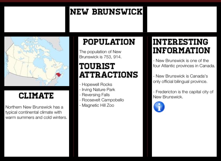 - New Brunswick is one of the four Atlantic provinces in Canada.