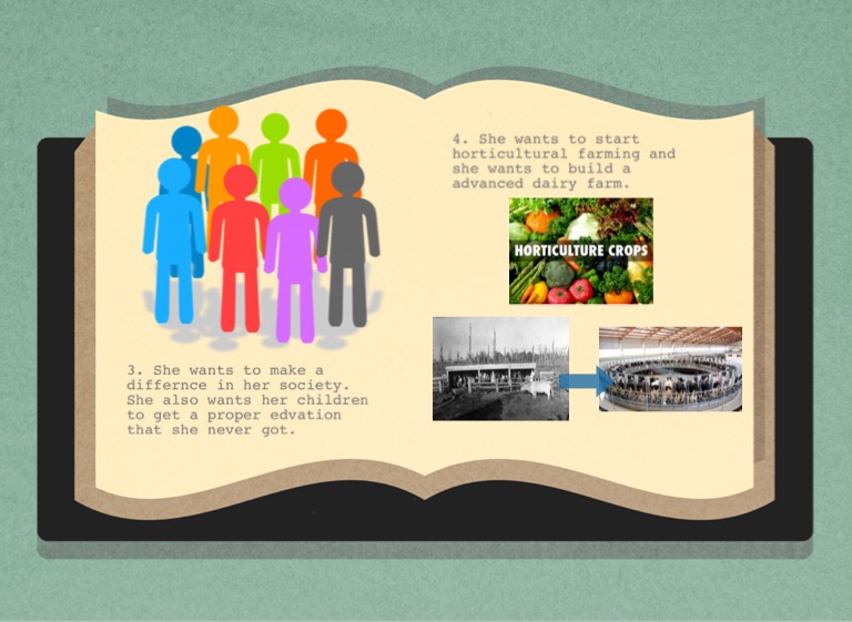 4. She wants to start horticultural farming and she wants to build a advanced dairy farm.