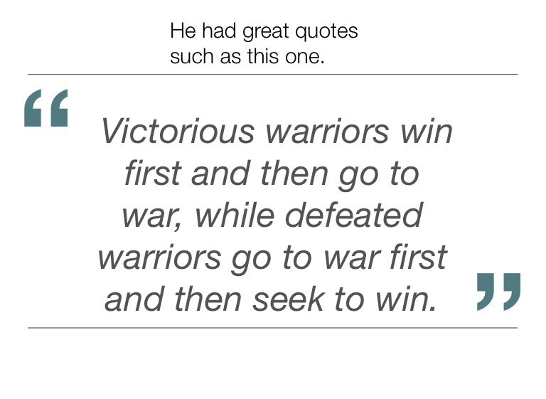 Victorious warriors win first and then go to war, while defeated warriors go to war first and then seek to win.
