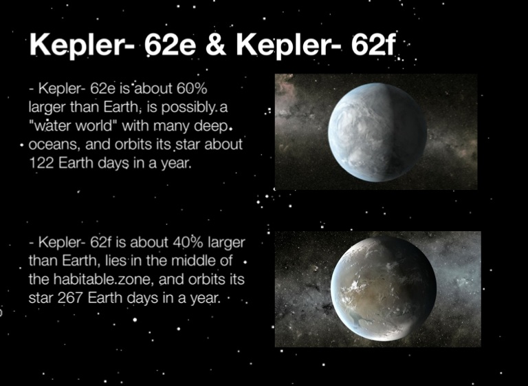 - Kepler- 62f is about 40% larger than Earth, lies in the middle of the habitable zone, and orbits its star 267 Earth days in a year.