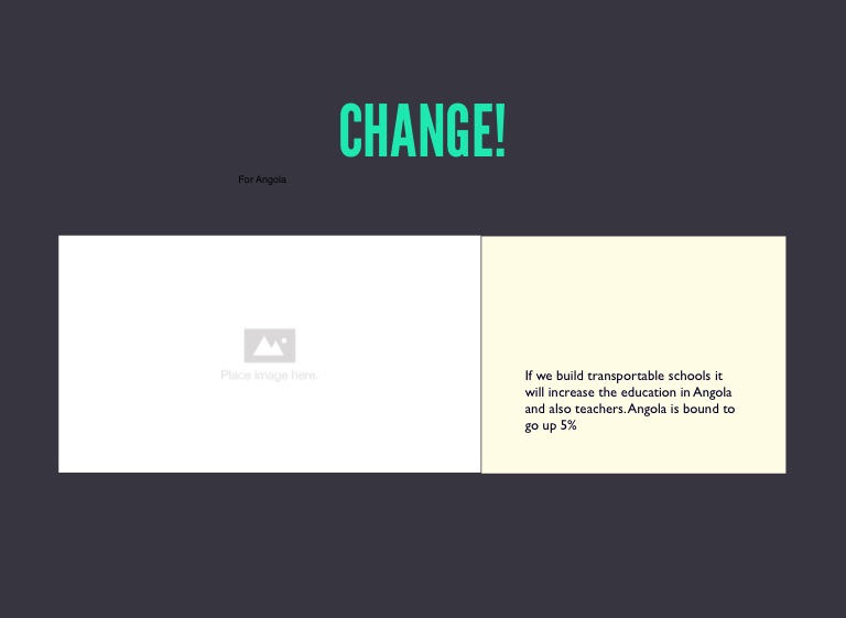 If we build transportable schools it will increase the education in Angola and also teachers. Angola is bound to go up 5% in the next five years.