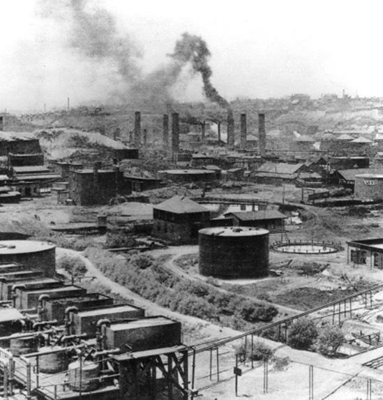 - In 1863, he opened his first refinery, and within two years it became the largest in the area.