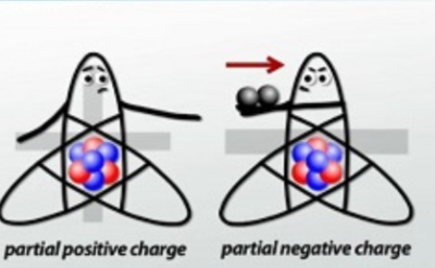In a polar covalent bond, one atom spends more time with the electrons than the other