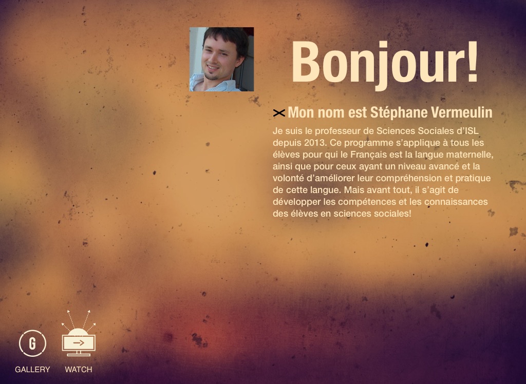 Je suis le professeur de Sciences Sociales d’ISL depuis 2013. Ce programme s’applique à tous les élèves pour qui le Français est la langue maternelle, ainsi que pour ceux ayant un niveau avancé et la volonté d’améliorer leur compréhension et pratique de cette langue. Mais avant tout, il s’agit de développer les compétences et les connaissances des élèves en sciences sociales!