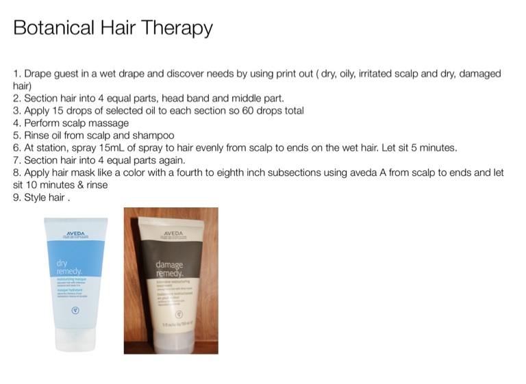 1. Drape guest in a wet drape and discover needs by using print out ( dry, oily, irritated scalp and dry, damaged hair)