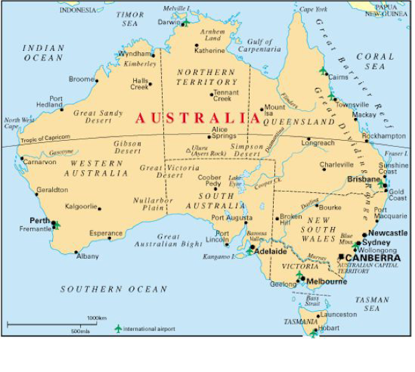 -la capitatale è Canberra, ma la città più popolosa è Sidney, seguita da Melbourne, Brisbane, Perth e Adelaide.