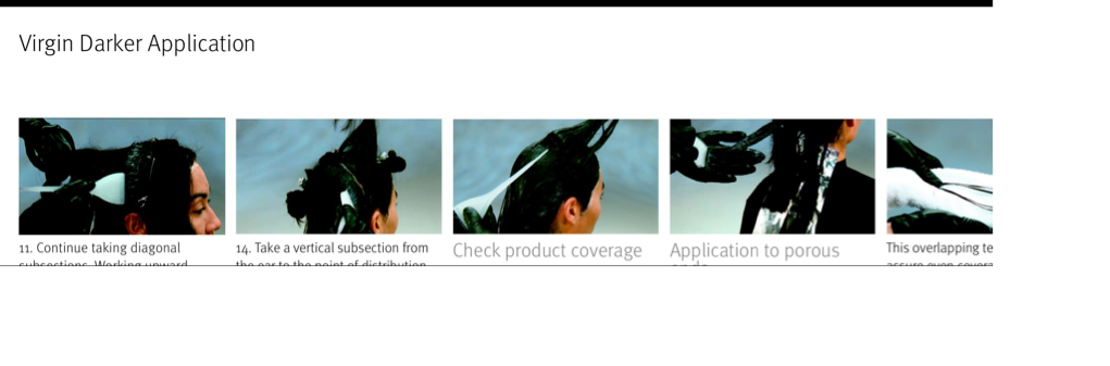 Section the hair apply protection cream mix the color formula you will be using in small with formula outline the back right quadrant along the hairline and part lift the hair up allow easy access stat at the nape in the back right quadrant life the hair up and use the tail of the color brush 1/2 inch using a color brush apply formula to the scalp if the end are overly dry and porous apply formula to but not covering the end