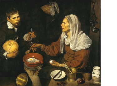 Old woman frying eggs is a painting by Diego Valazquez, produced during his Seville period.