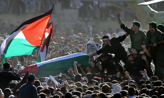 ياسر عرفات …أنا مازات هنا في رام اللة حيش انشااللة قي يوم من الايام سوف يتحرر شعبي من الاحتالل.