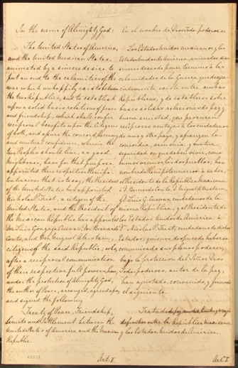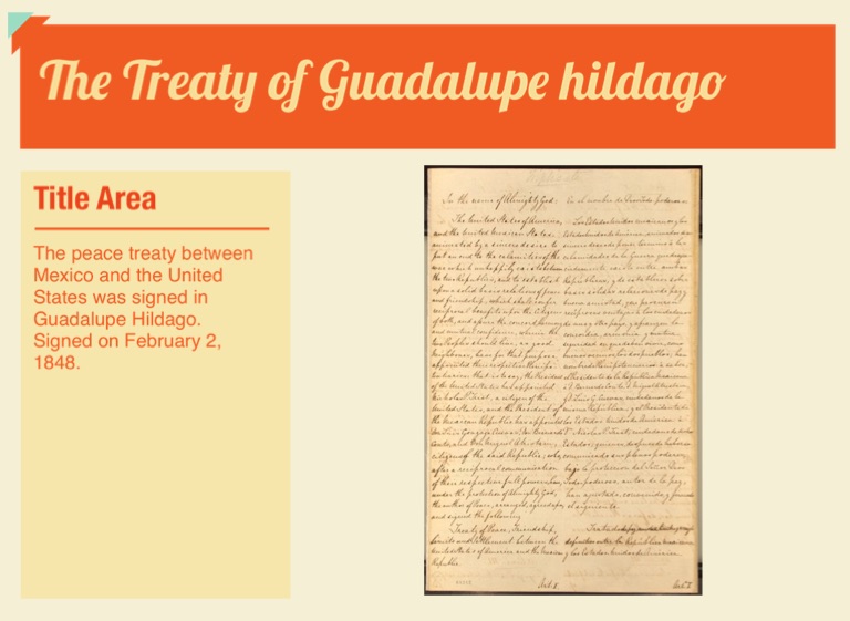 The peace treaty between Mexico and the United States was signed in Guadalupe Hildago. Signed on February 2, 1848.