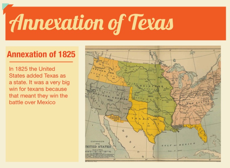 In 1825 the United States added Texas as a state. It was a very big win for texans because that meant they win the battle over Mexico