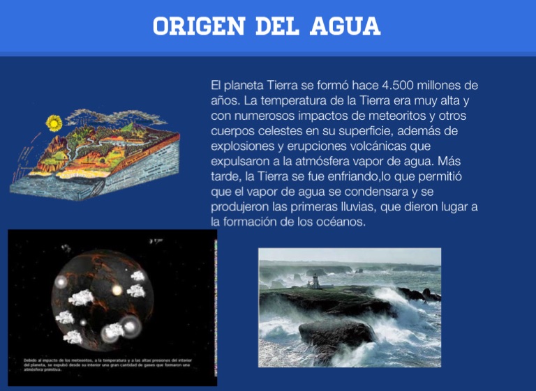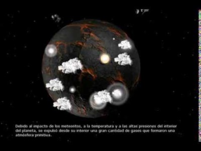 El planeta Tierra se formó hace 4.500 millones de años. La temperatura de la Tierra era muy alta y con numerosos impactos de meteoritos y otros cuerpos celestes en su superficie, además de explosiones y erupciones volcánicas que expulsaron a la atmósfera vapor de agua. Más tarde, la Tierra se fue enfriando,lo que permitió que el vapor de agua se condensara y se produjeron las primeras lluvias, que dieron lugar a la formación de los océanos.