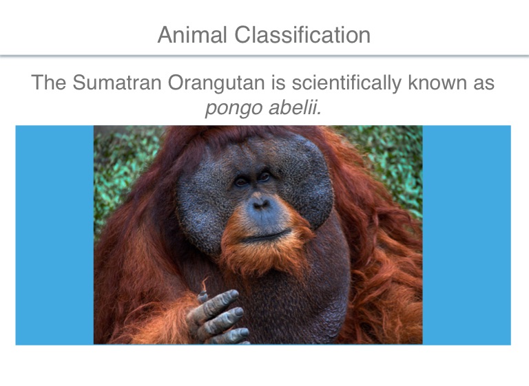The Sumatran Orangutan is scientifically known as pongo abelii.