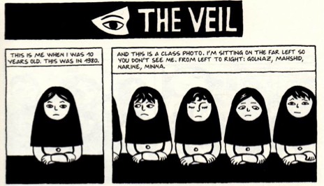 The veiling practice in the Islamic religion: Does the veil deny women of their natural rights, or does it represent obedience to Allah? This picture shows a scene from Persepolis where the young girls are forced to wear veils. The chapter explains how the girls did not like to wear the veils, so they took them off. They did not yet understand what they symbolized and why they had to wear them. The picture shows that everybody looks the same in the veil. You cannot tell them apart from each other. I believe by doing this, the author is showing that being forced to wear the veil, it was difficult to express individuality. Currently in Iran, it is against the law for women to appear in public without a veil. Other countries like Turkey have banned wearing the veil. In the Quran, it is said, "O Prophet, tell your wives and daughters and the believing women to draw their outer garments around them". The veils are suggested by their holy book to show that they are Muslim, and has been in practice since 13 B.C. As an American male, I understand the view point that the veiling practice is a long honored tradition and shows a commitment to following the muslim religion. However, does removing the veil only allow women to have freedom of expression, or, does it allow females significantly more? I would argue that the veil is something much greater than hiding individualism. The concept of the veil is actually forcing women into an enslavement, one in which all freedoms are denied. Women do not have the choice to wear the veil, they are forced to wear them. This veil is not just a piece of cloth, but it is a prison. The veil of constraint should be lifted. I believe the core principle of freedom is for the individual to have the choice to decide, which could ultimately allow millions of women to unveil themselves and experience a profoundly new way of life.
