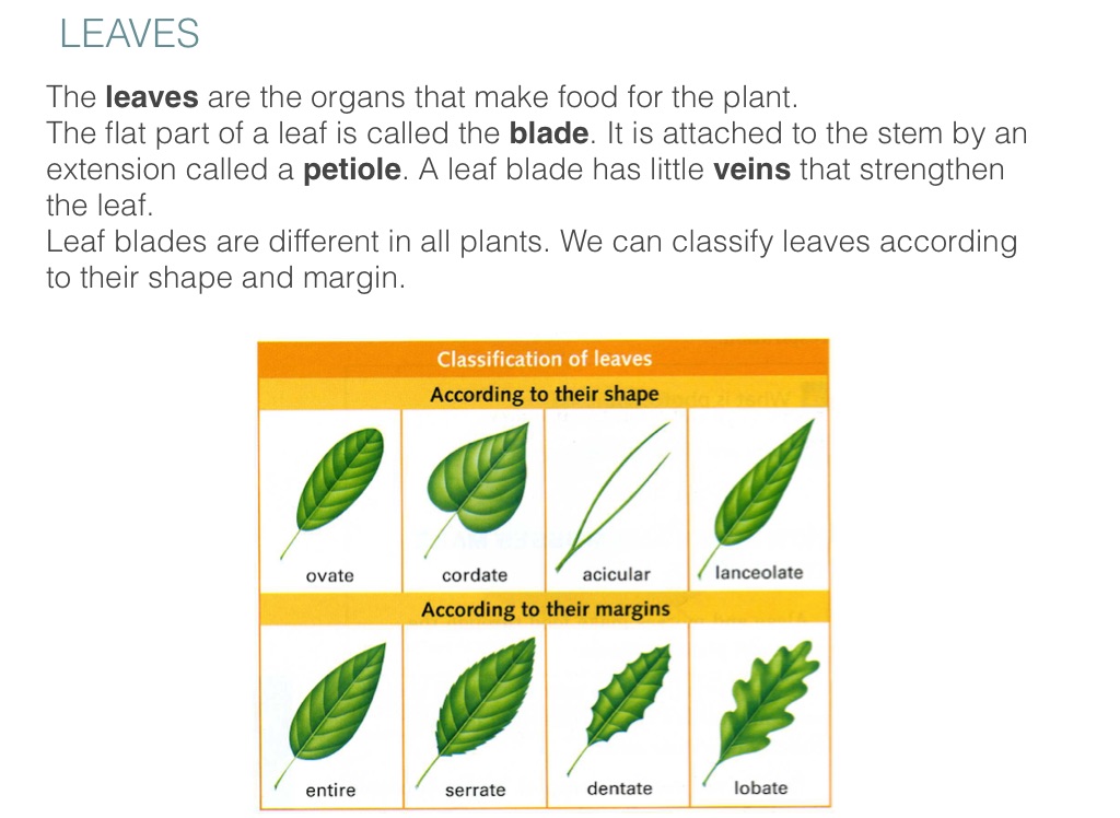 Leaf blades are different in all plants. We can classify leaves according to their shape and margin.