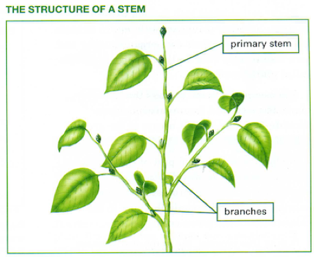 In many plants, the stem divides into branches. The main axis is called the primary stem.
