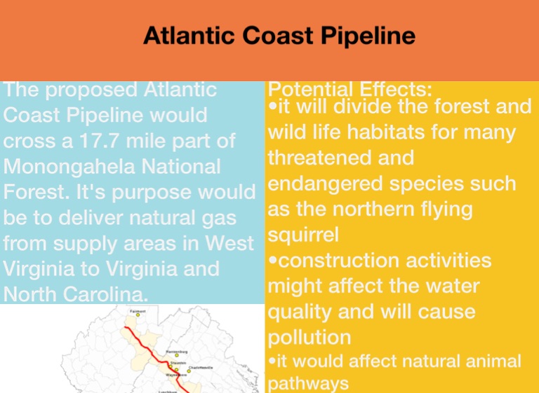 The proposed Atlantic Coast Pipeline would cross a 17.7 mile part of Monongahela National Forest. It's purpose would be to deliver natural gas from supply areas in West Virginia to Virginia and North Carolina.