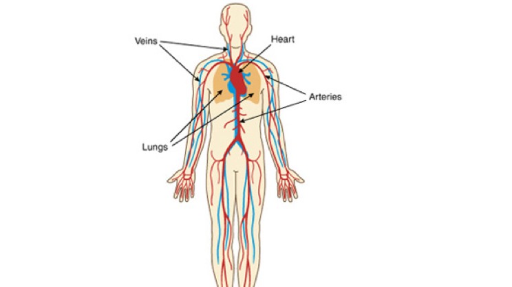 Circulates blood throughout the human body, it consists of the heart, blood, arteries , capillaries and veins