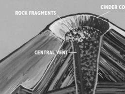 Explosive eruptions caused by gas rapidly expanding and escaping from molten lava formed cinders that fell back around the vent, building up the cone to a height of 1,200 feet.