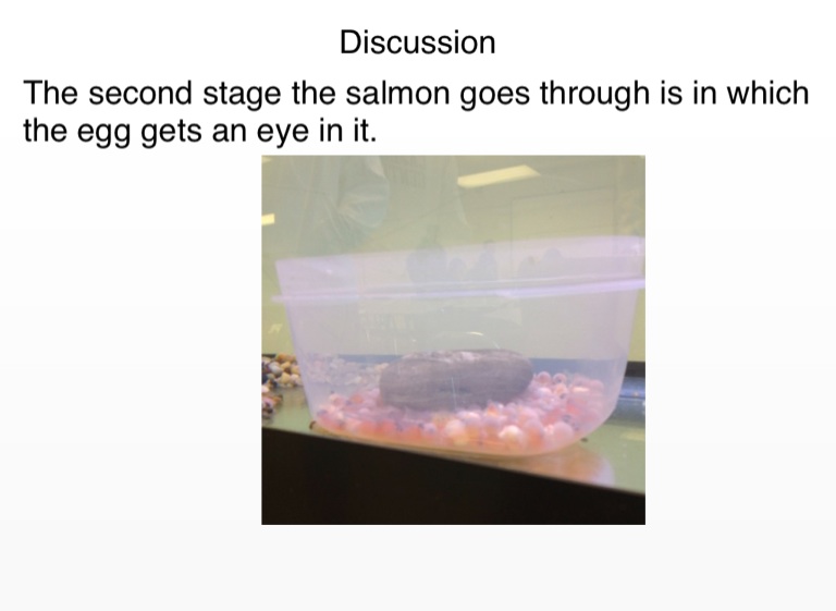 The second stage the salmon goes through is in which the egg gets an eye in it.