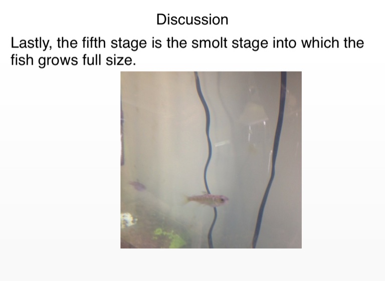 Lastly, the fifth stage is the smolt stage into which the fish grows full size.
