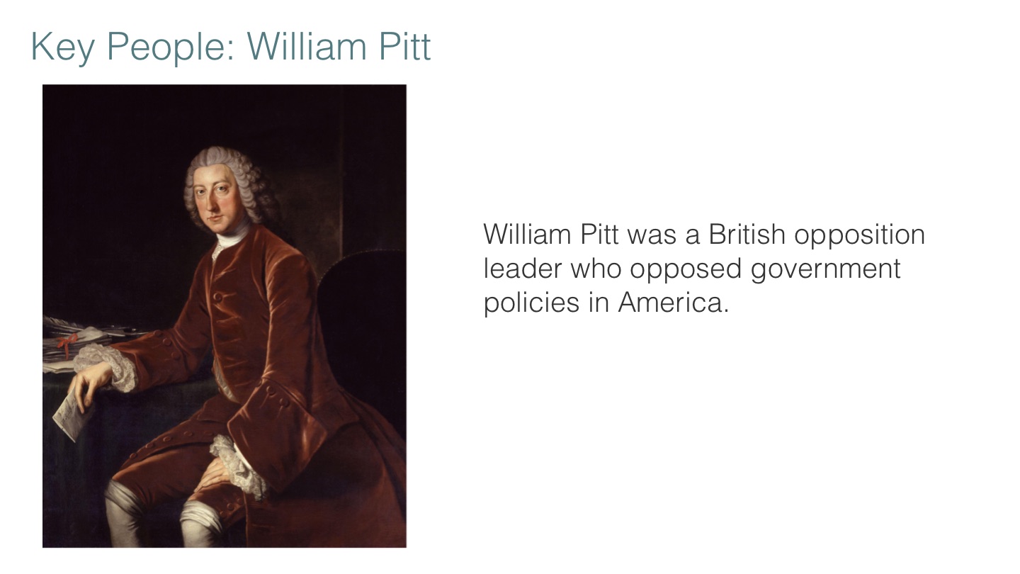 William Pitt was a British opposition leader who opposed government policies in America.
