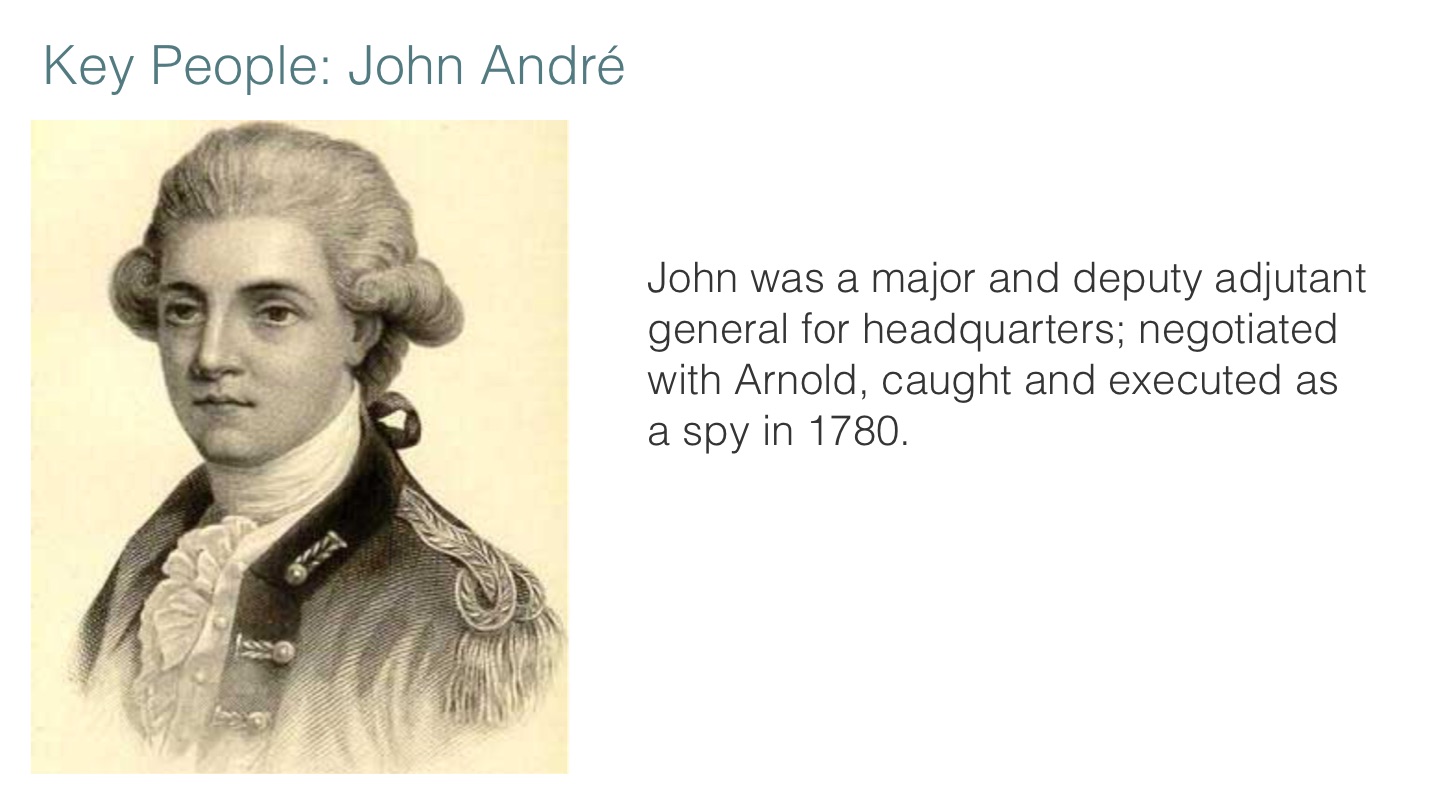 John was a major and deputy adjutant general for headquarters; negotiated with Arnold, caught and executed as a spy in 1780.