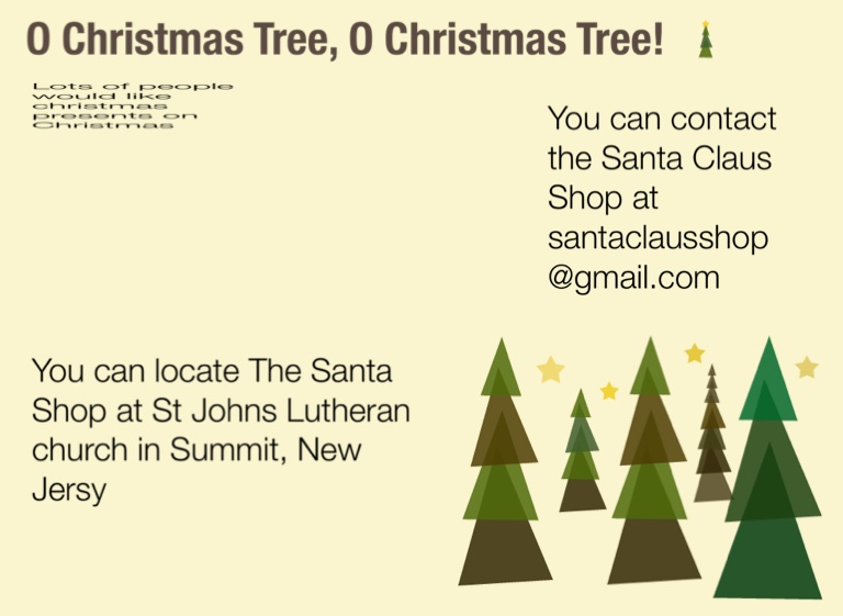 You can locate The Santa Shop at St Johns Lutheran church in Summit, New Jersy
