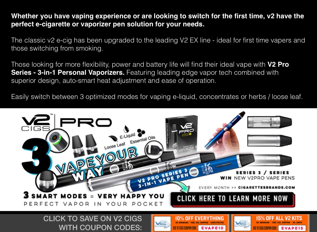 v2 vapes and e-cigarette coupons - save on v2 ex ecigs and v2 pro 3-in1 vape pens