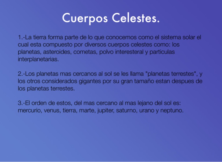 1.-La tierra forma parte de lo que conocemos como el sistema solar el cual esta compuesto por diversos cuerpos celestes como: los planetas, asteroides, cometas, polvo interesteral y particulas interplanetarias.