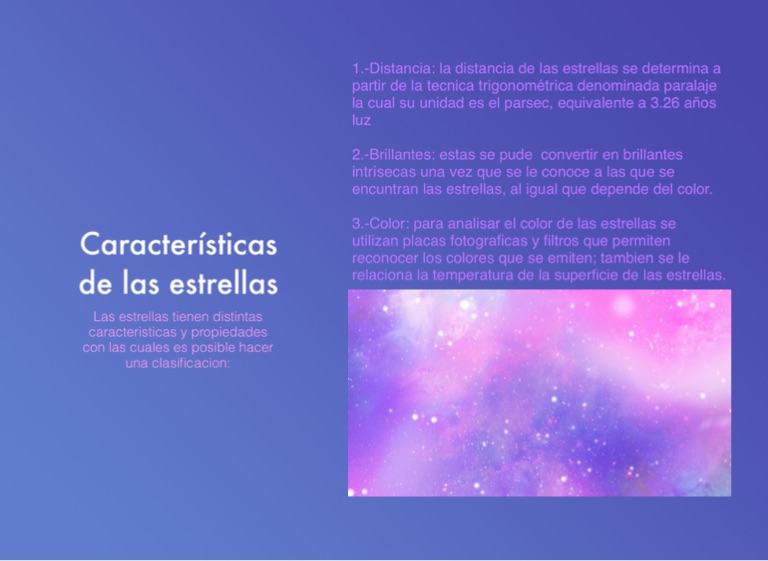 Las estrellas tienen distintas caracteristicas y propiedades con las cuales es posible hacer una clasificacion: