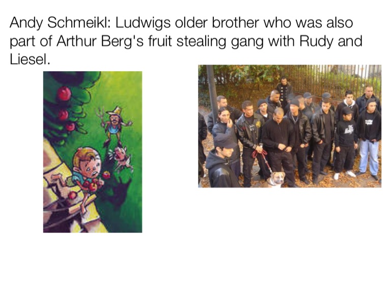 Andy Schmeikl: Ludwigs older brother who was also part of Arthur Berg's fruit stealing gang with Rudy and Liesel.