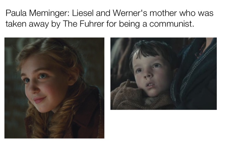 Paula Meminger: Liesel and Werner's mother who was taken away by The Fuhrer for being a communist.